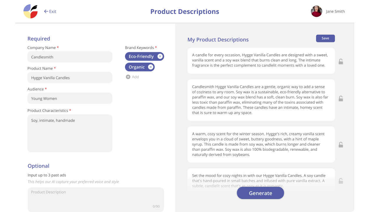 Our platform was developed by a team of award-winning copywriters, marketing experts from some of the world’s top agencies, and AI researchers from global tech giants. The more you interact with the generated copy, editing and refining, Copysmith adapts to your style.